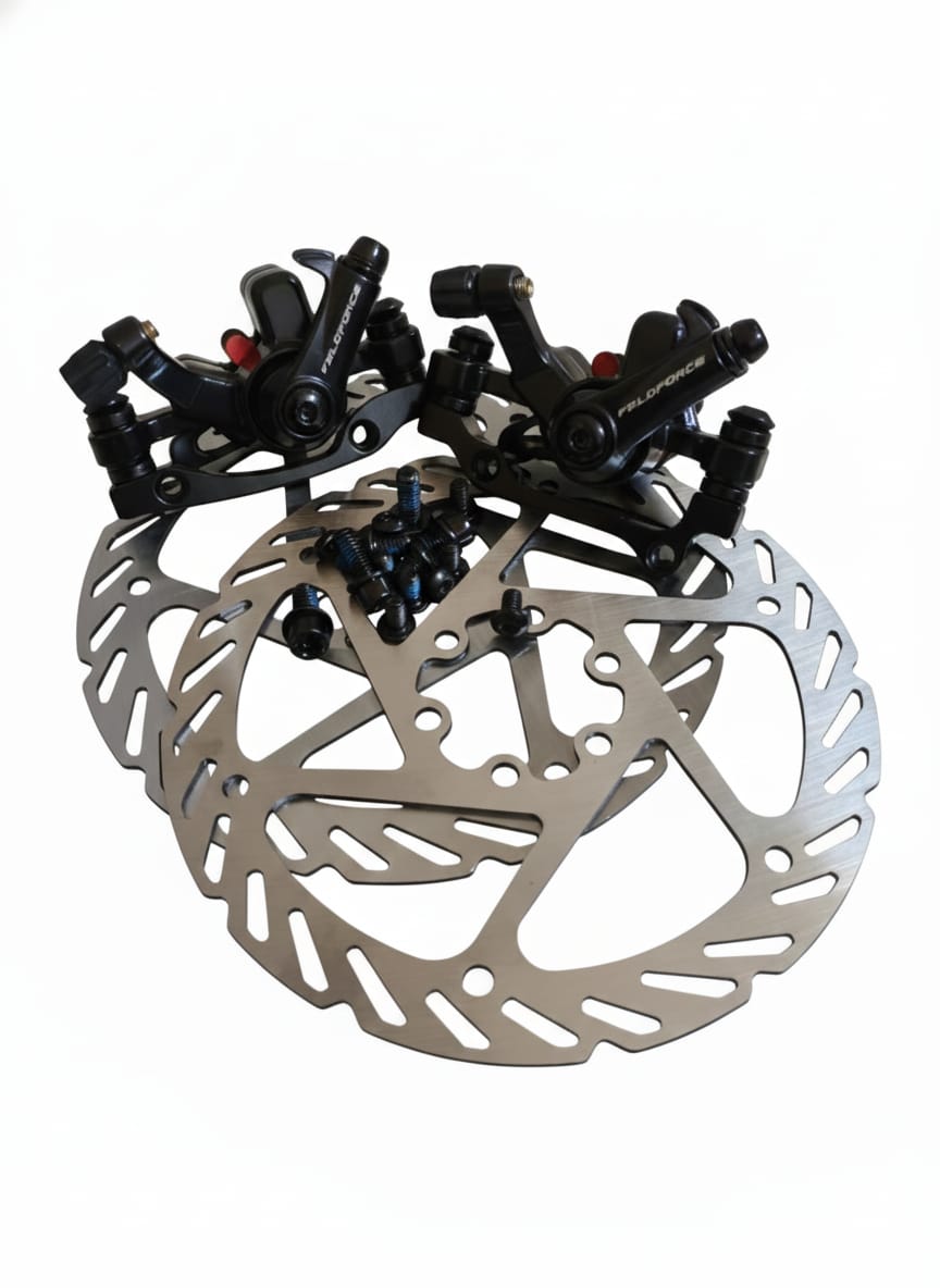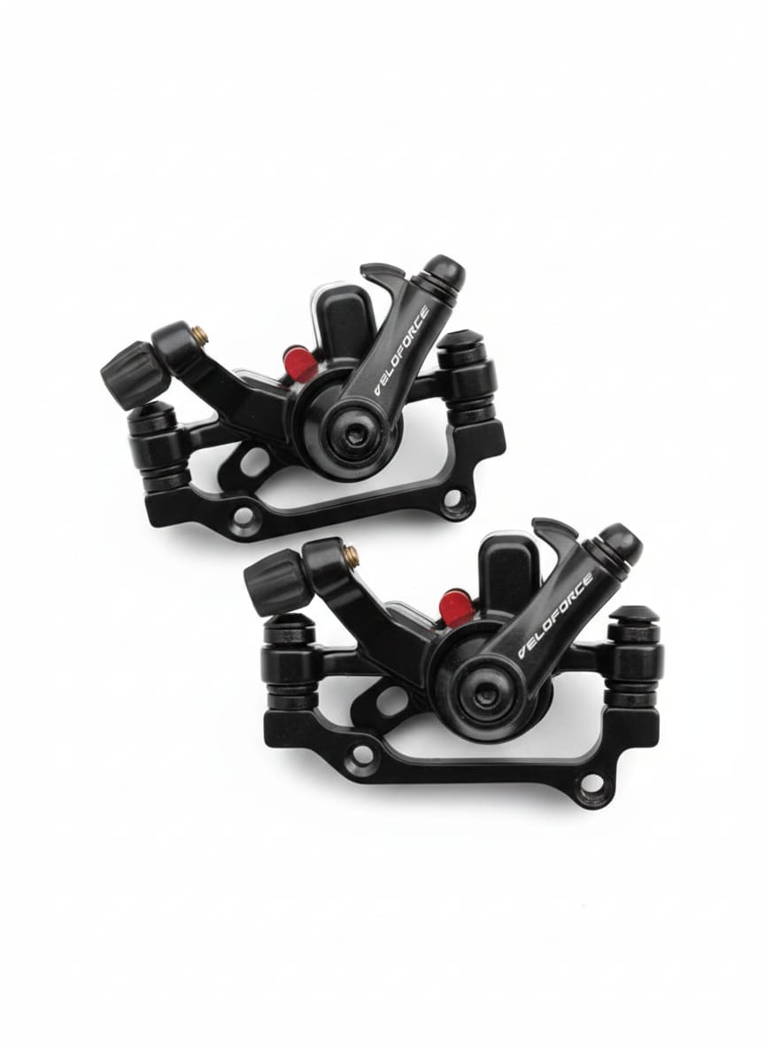 Obtenha frenagens de qualidade com excelente custo x benefício com o Par de Freios à Disco Veloforce – Mecânico. Fabricados em alumínio, proporcionam leveza e durabilidade contra impactos, atritos e corrosões, mantendo elevada a qualidade para uso urbano, passeios e treinos de mountain bike.
