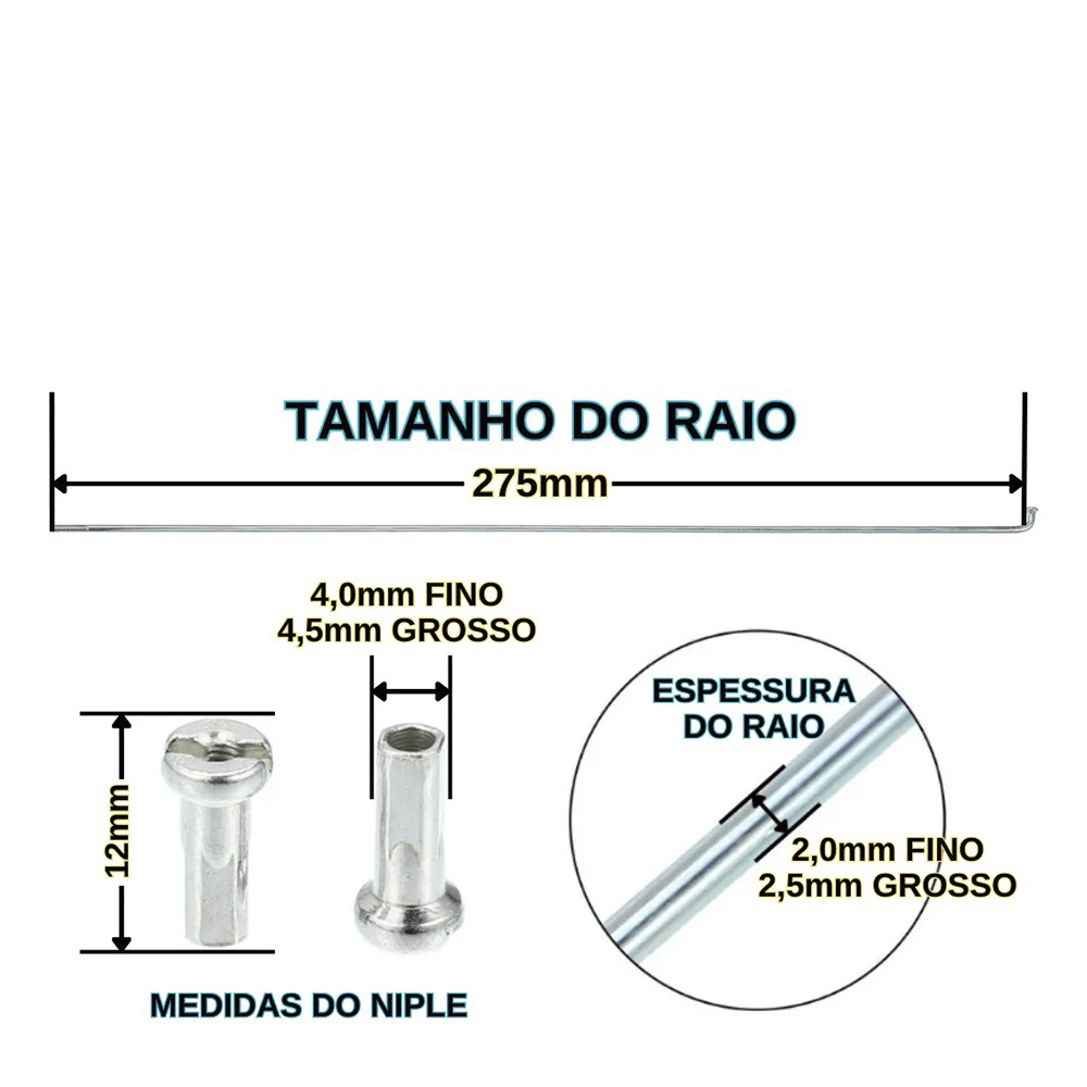 o comprar raios para uma bicicleta, não adianta saber apenas o tamanho do aro, você precisa saber qual é o “TAMANHO DOS RAIOS” que a bike usa!